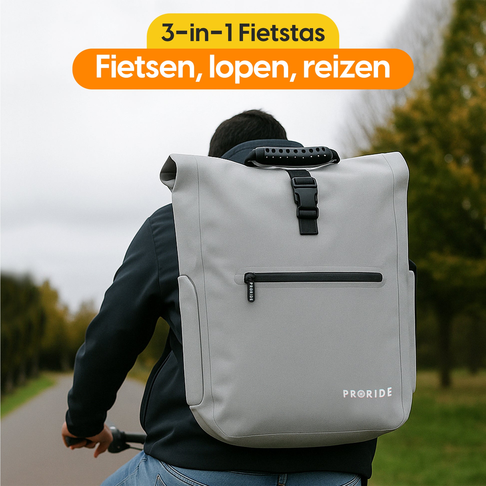 Proride 3-in-1 Fietstas I Rugzak I 25L I Waterdicht I Reflecterend Grijs